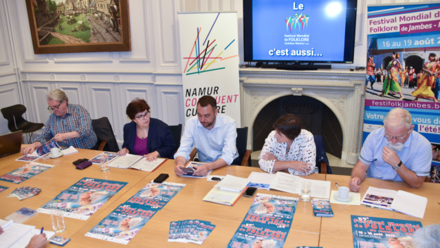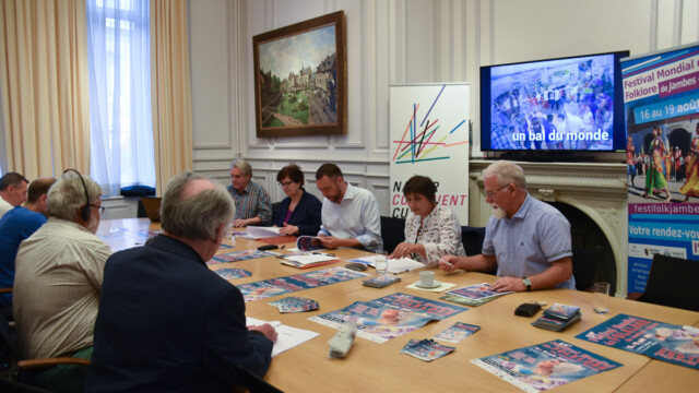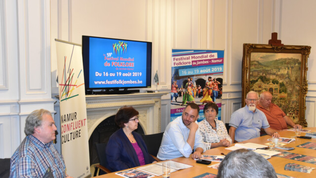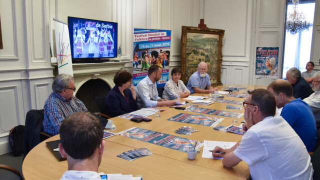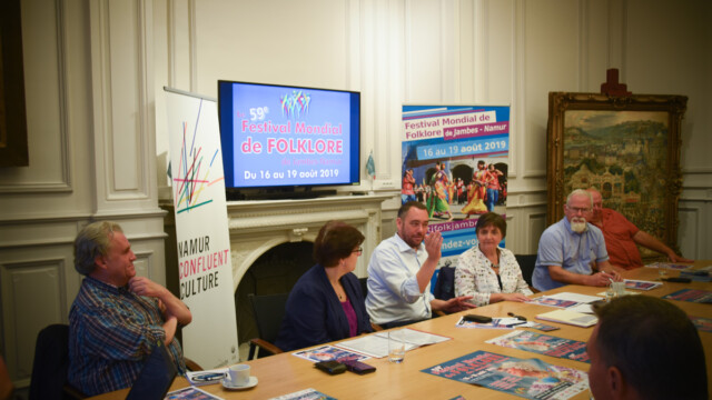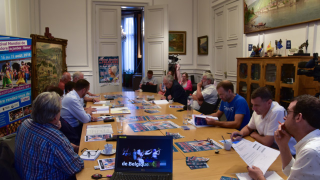 Ce mercredi 31 juillet s’est tenue au Cabinet du Bourgmestre, la conférence de presse du 59e Festival Mondial de Folklore de Jambes-Namur, en présence du Bourgmestre, d’une partie du Conseil d’Administration et de quelques membres.