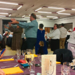 S’en est suivi, un banquet avec un très beau menu. Le Festival Mondial était en compagnie de la Confrérie du Grand Feu Traditionnel de Bouge, avec, entre autres : Roger Stecker, Marianne Simon, Jean-Marie Lizin.
