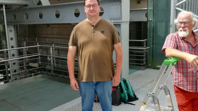 Mardi 2 août : montage de l’exposition dans le cube de la gare de Namur.