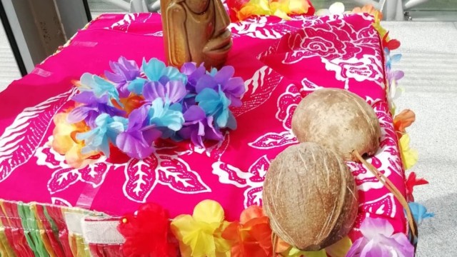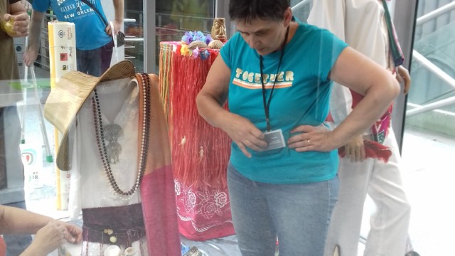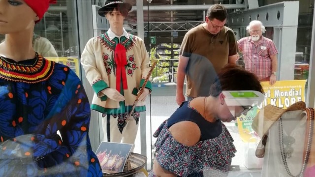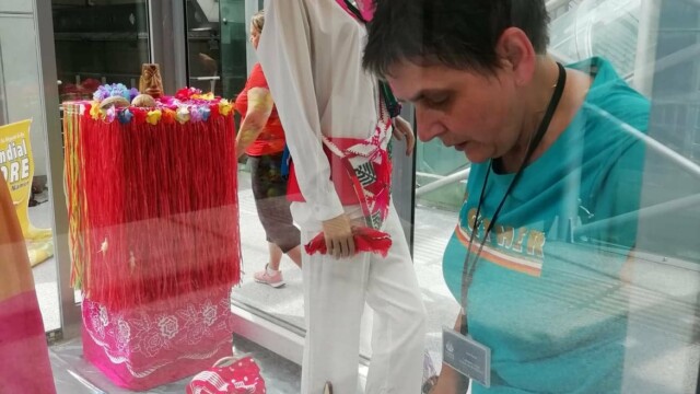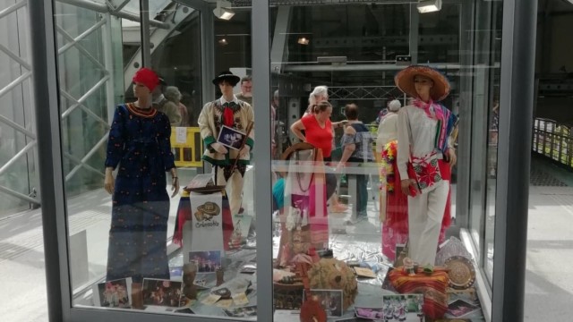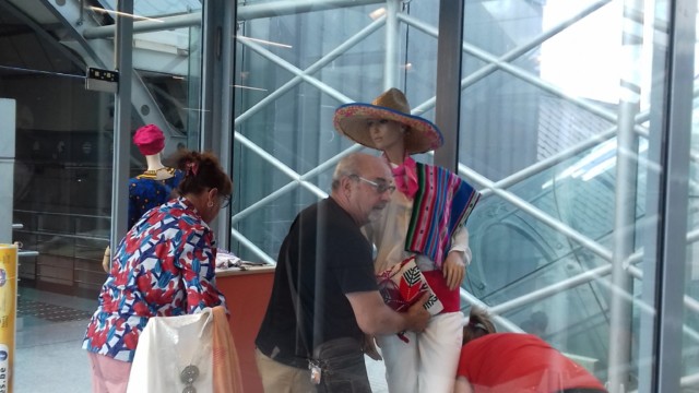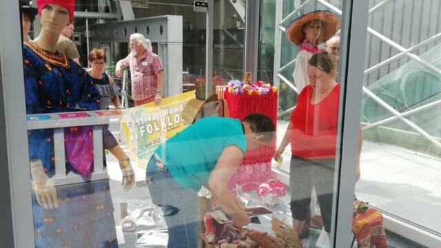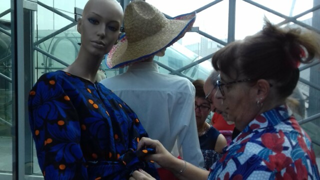 Dans la bonne humeur, la petite équipe habituelle s’est activée à habiller les différents mannequins au dress-code des invités internationaux. Le tout étant agrémenté d’objets décoratifs et de photos.